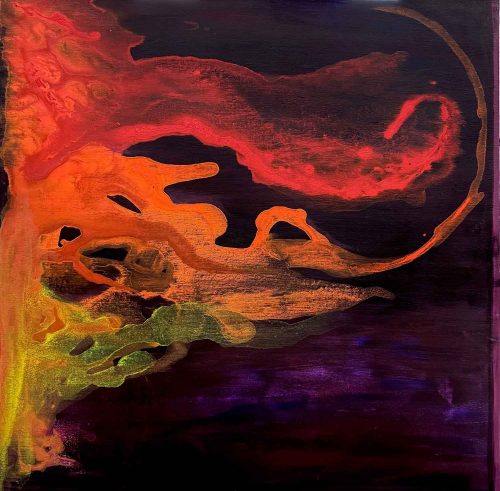 “In Flow, I choreograph paint’s liquid nature—tilting, pouring, directing its movement to create organic forms that capture the beauty of controlled chaos, where gravity and intention collaborate.”
